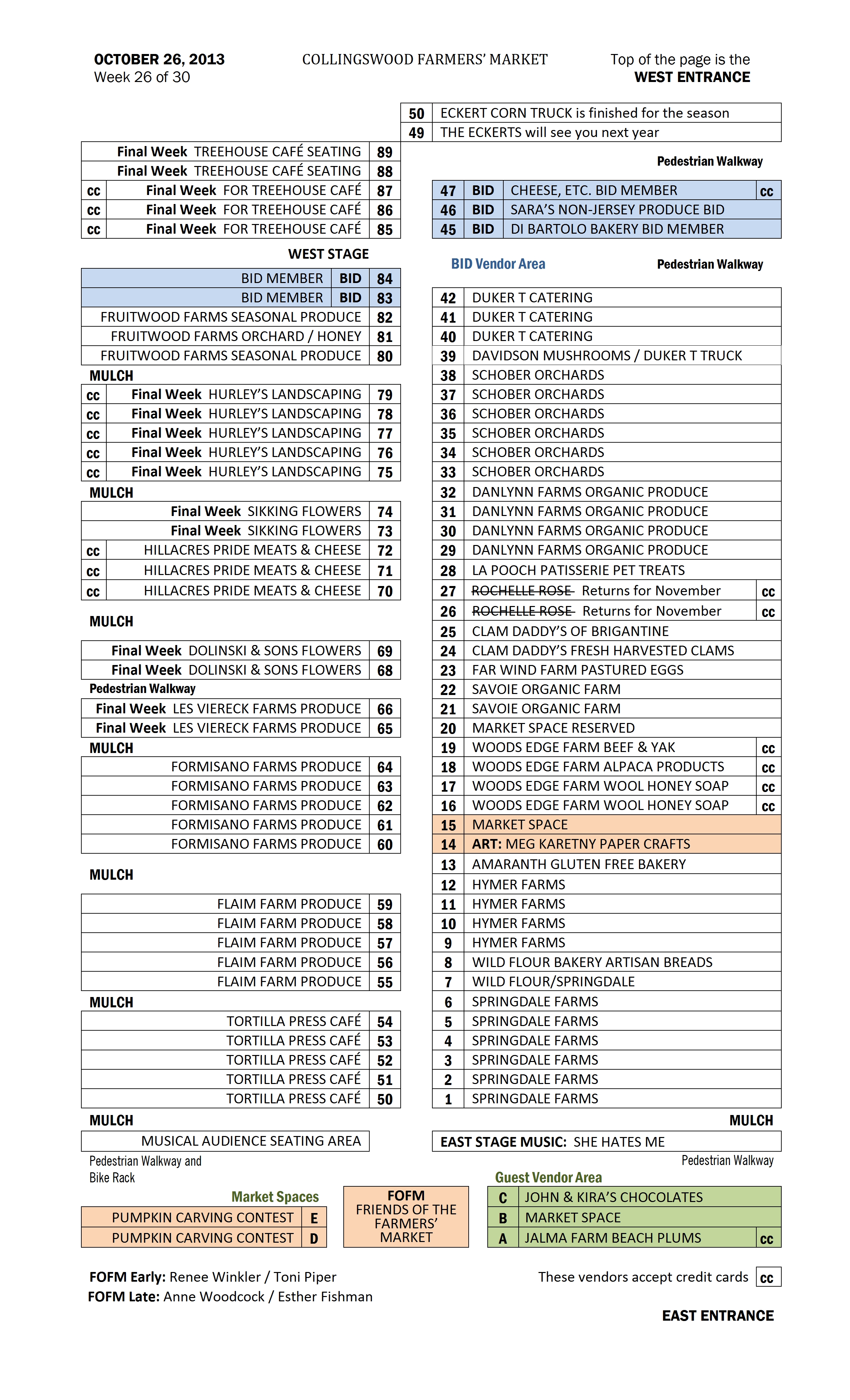 Saturday is the final Market day for several vendors. It’s been a wonderful spring/summer/fall, and we appreciate you all. Farewell this week to Treehouse Cafe, Hurley’s Landscaping, Sikking Flowers, Dolinski and Sons, and Les Viereck. Thank you, and see you next spring!