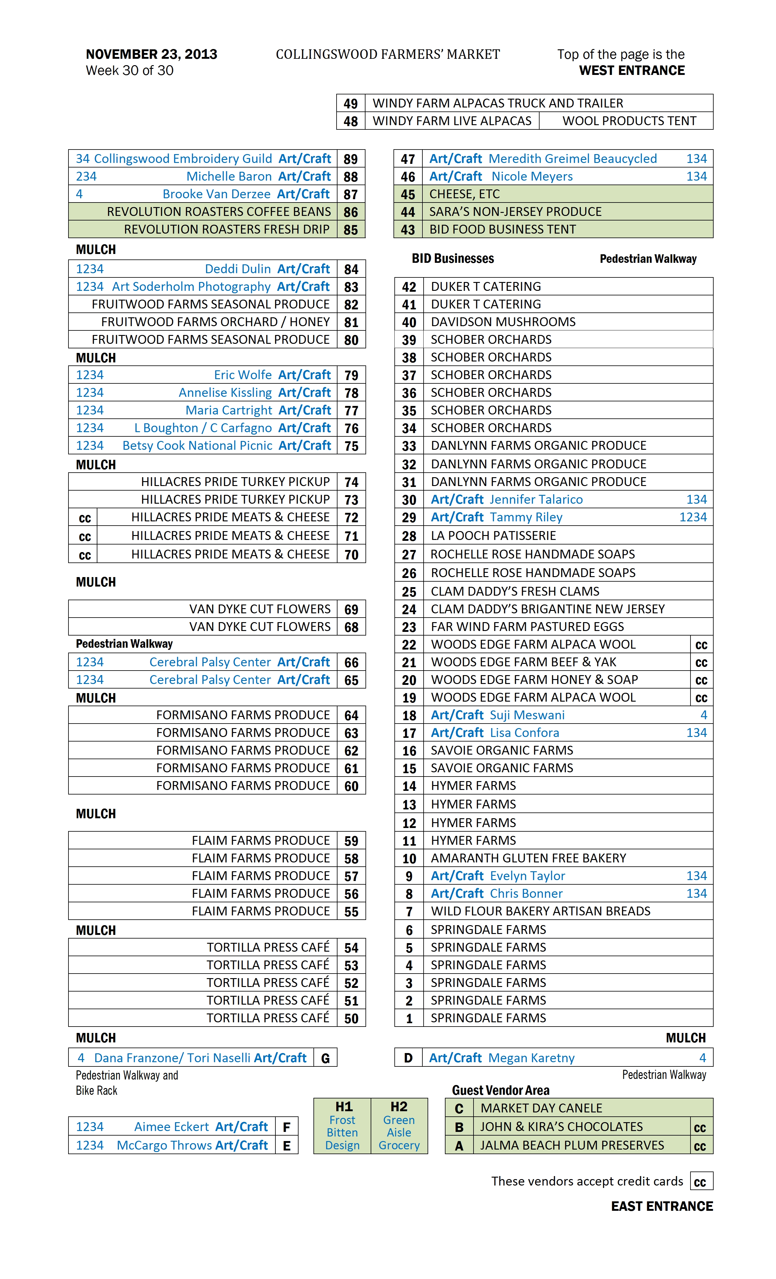 On this, our final week of the 2013 Market season, SAT NOV 23, we’ll wrap up both our produce sales and this year’s edition of the Handmade Holidays art and craft bazaar. Most of this week’s new vendors are back for repeat visits, but four will be making their very first appearance, so there may be just a bit of messiness at move-in and setup.