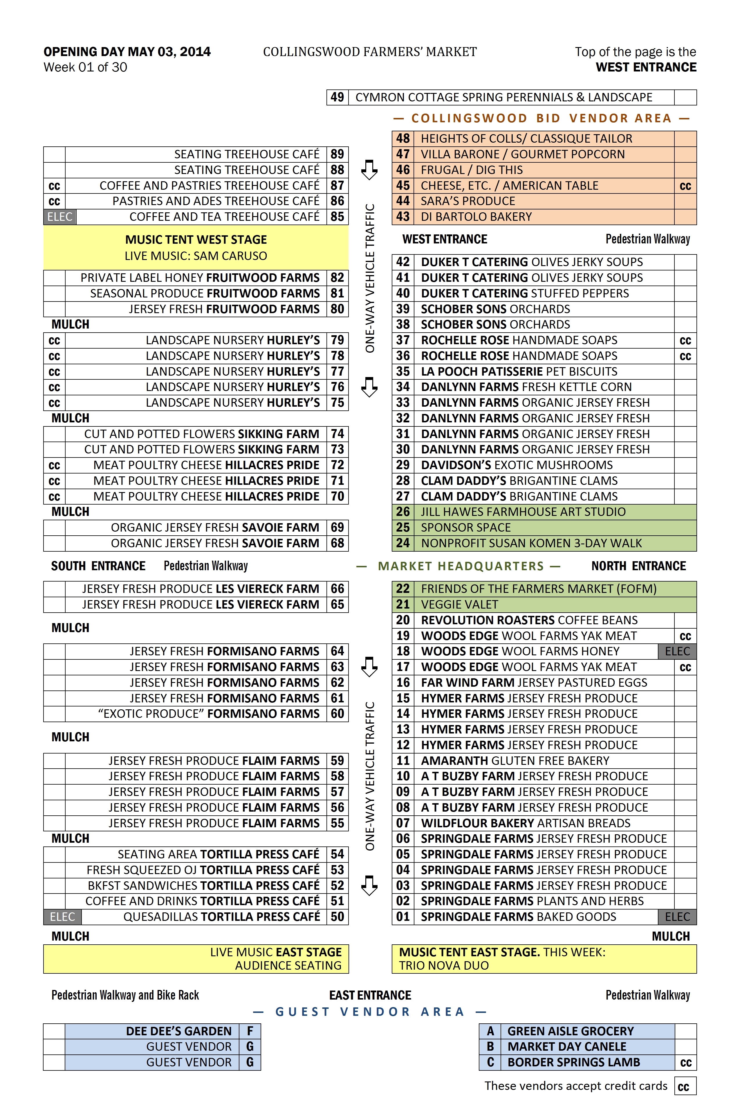 Vendors who accept credit cards are identified on the site plan by cc. Please let me know if you’ve decided to accept credit payments this year. I’ll note so on the next plan.