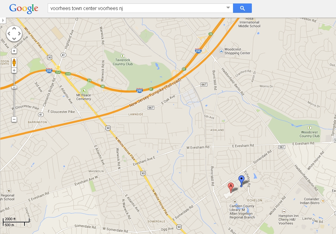 To see more of the Google directions, use “Voorhees Town Center, Voorhees NJ” as your destination, as I have done in the map field below.