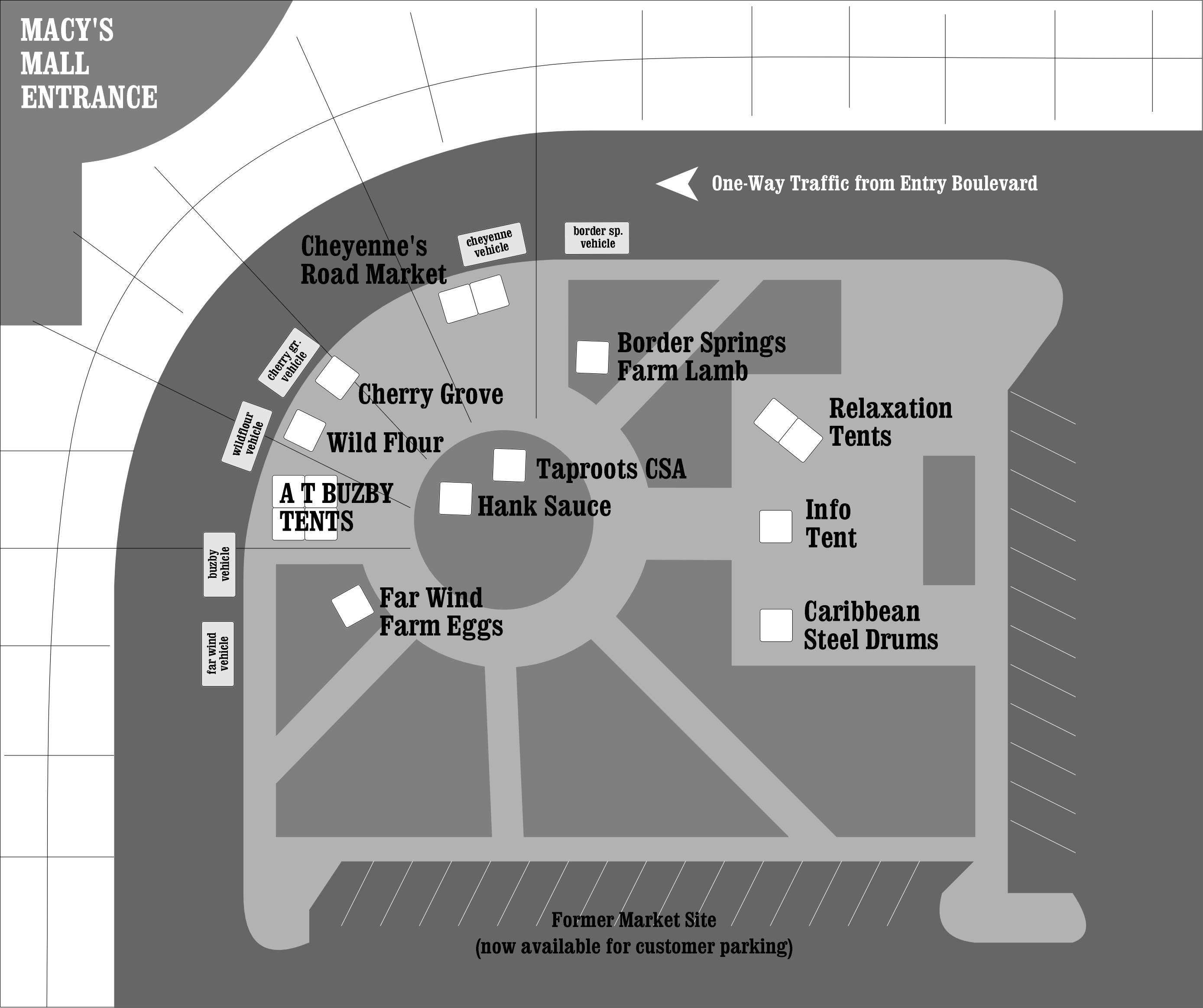 Davidson’s Mushrooms is iffy today, so they don’t appear on the site plan yet. If they do come, they’ll bring shitakes, criminis, and other exotic mushrooms.
