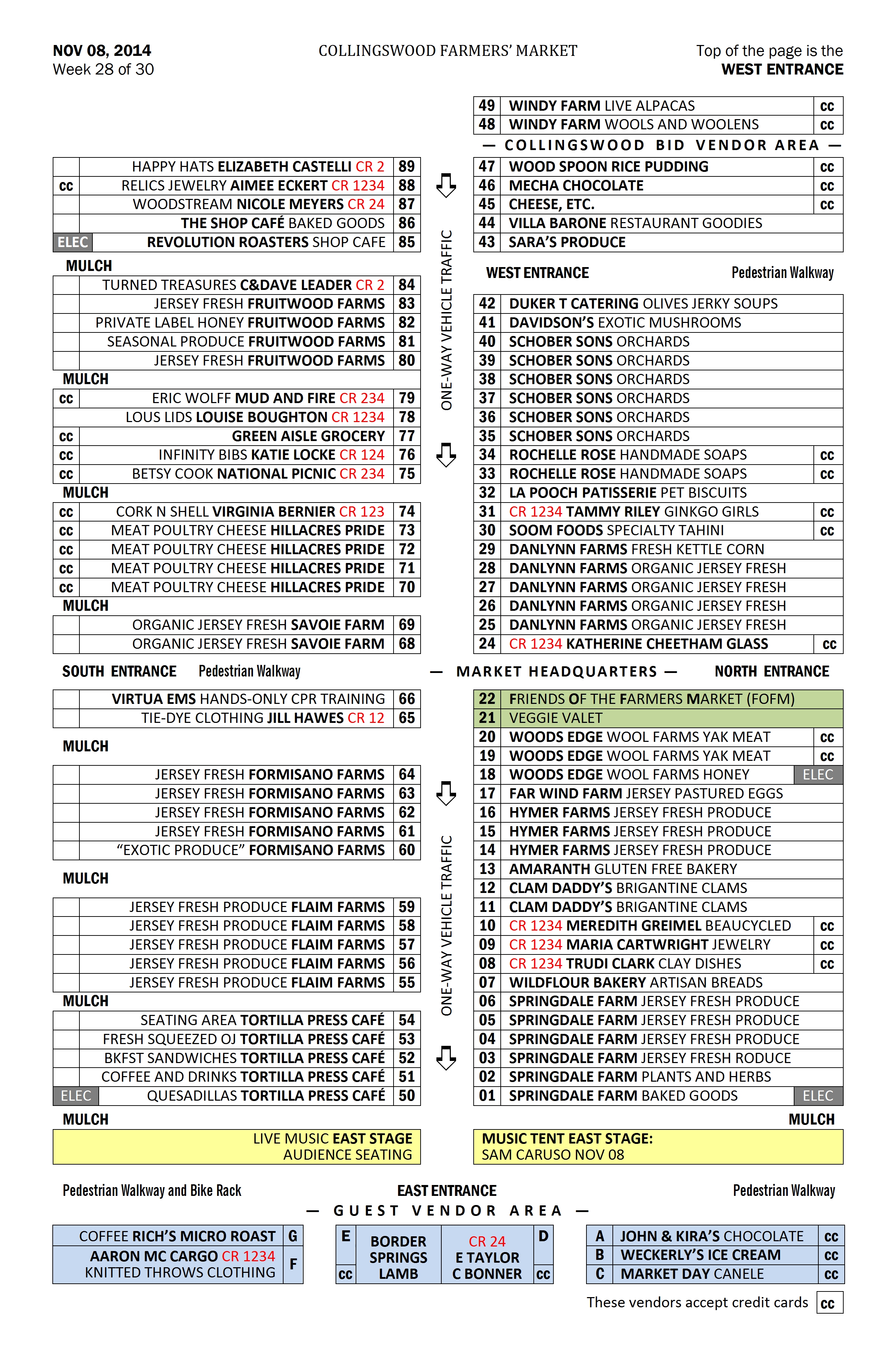 Changes will continue to occur throughout the season as vendors come and go and as we learn more about how neighbors interact. I remind you no spaces are ever guaranteed and require your cooperation if I have to move your location any given week. Thank you.