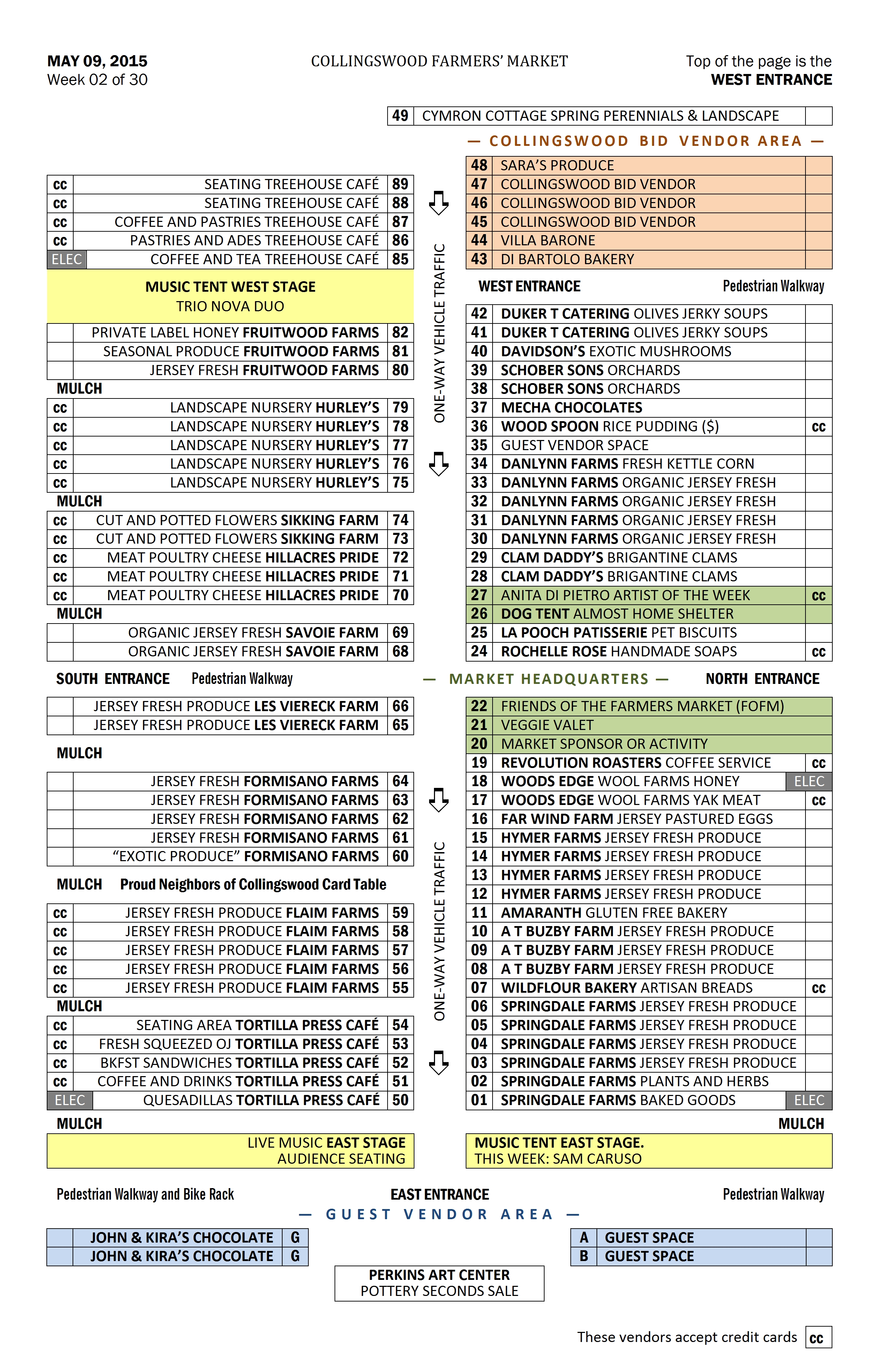 Changes will continue to occur throughout the season as vendors come and go and as we learn more about how neighbors interact. I remind you no spaces are ever guaranteed and require your cooperation if I have to move your location any given week. Thank you.