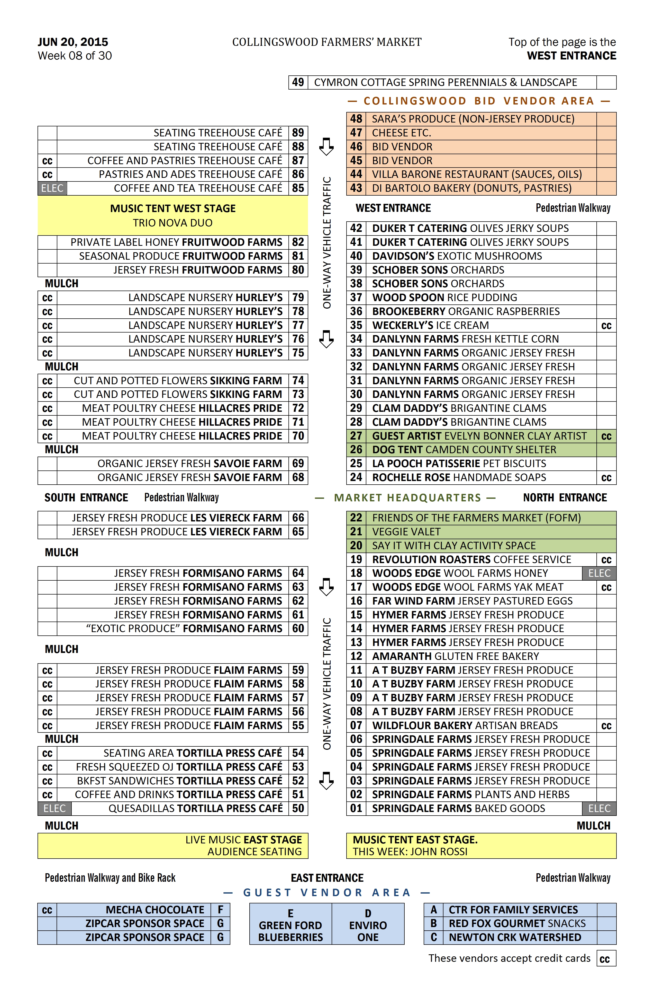 Changes will continue to occur throughout the season as vendors come and go and as we learn more about how neighbors interact. I remind you no spaces are ever guaranteed and require your cooperation if I have to move your location any given week. Thank you.