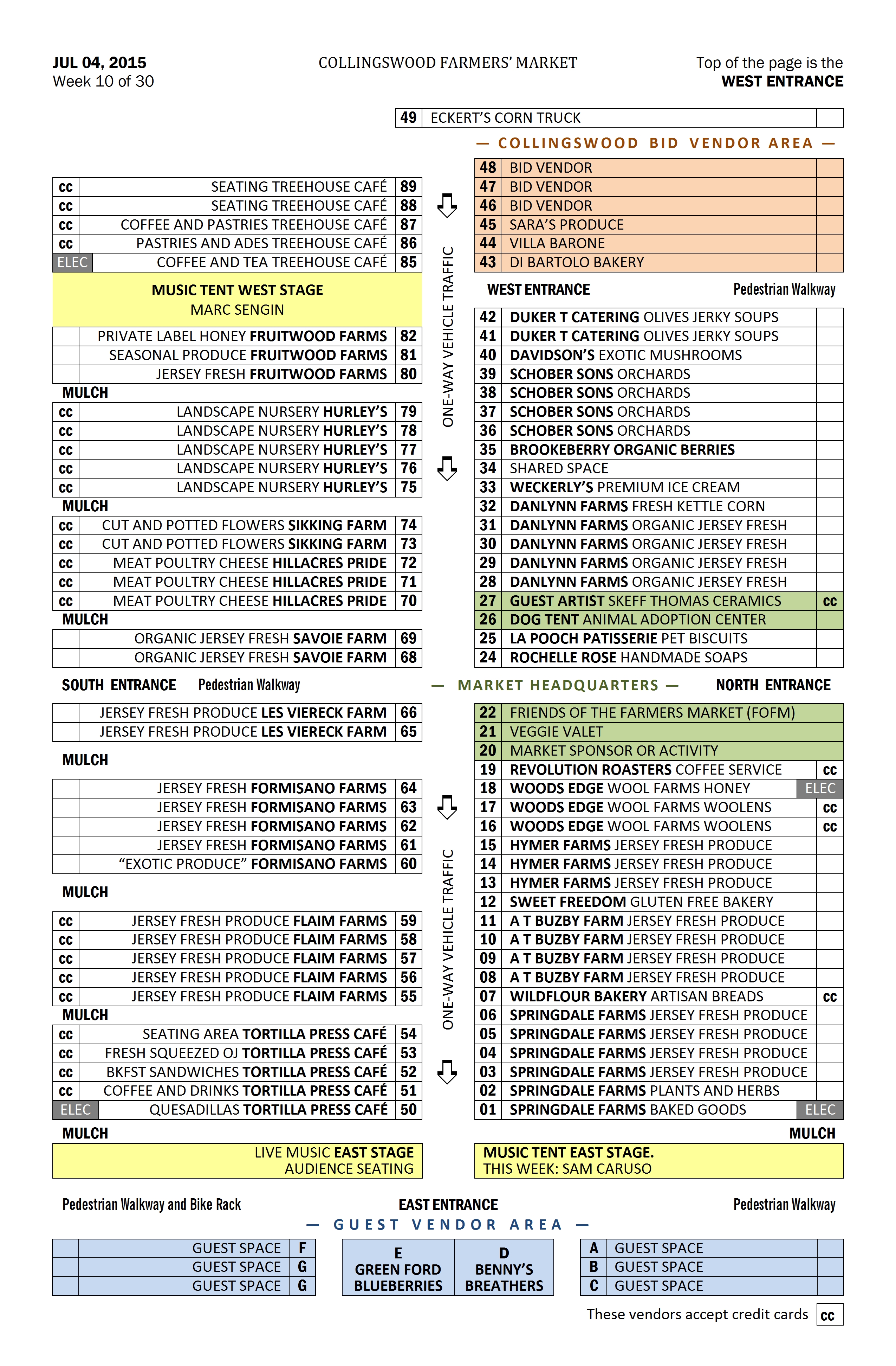 Changes will continue to occur throughout the season as vendors come and go and as we learn more about how neighbors interact. I remind you no spaces are ever guaranteed and require your cooperation if I have to move your location any given week. Thank you.