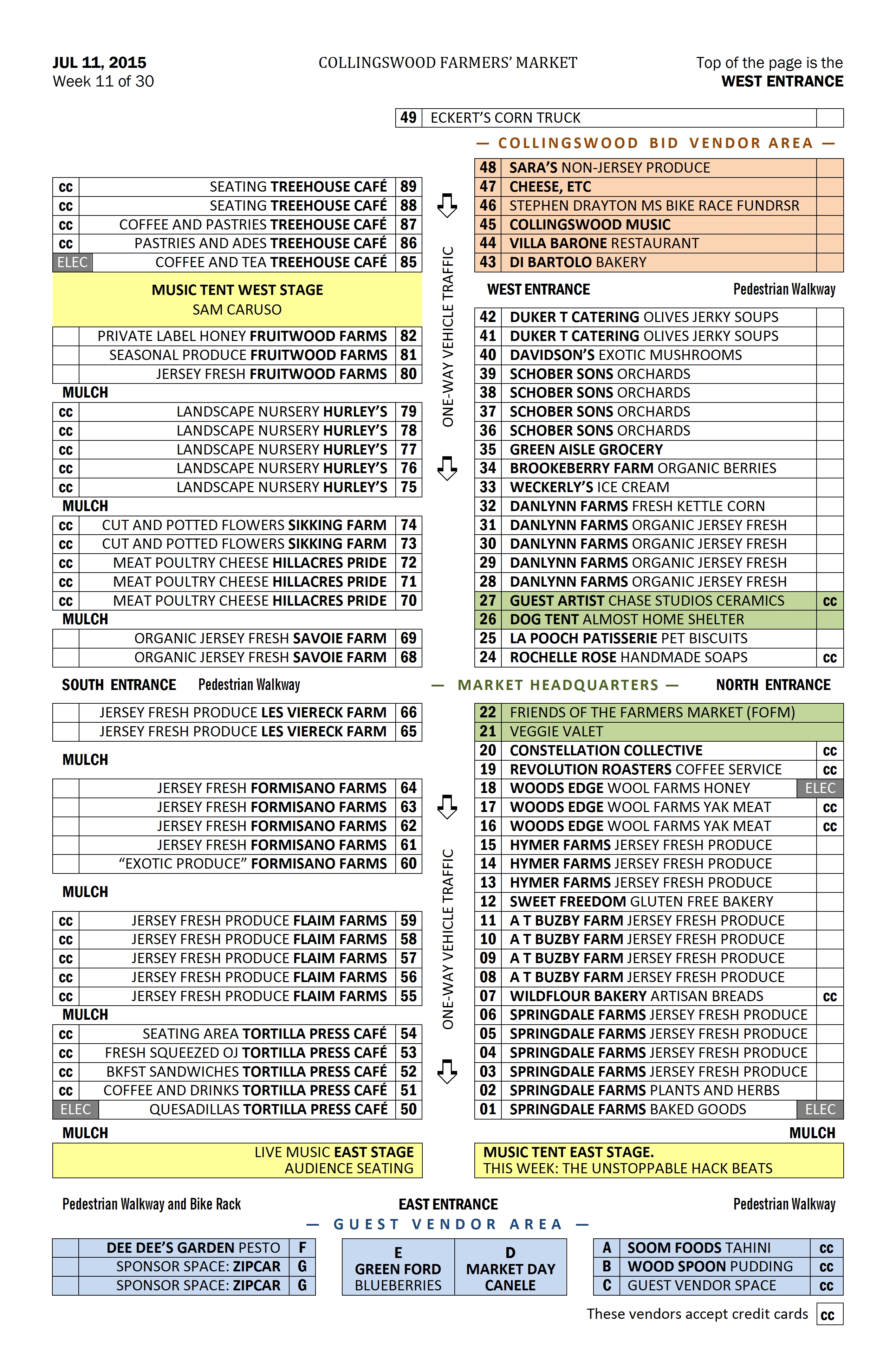 Changes will continue to occur throughout the season as vendors come and go and as we learn more about how neighbors interact. I remind you no spaces are ever guaranteed and require your cooperation if I have to move your location any given week. Thank you.