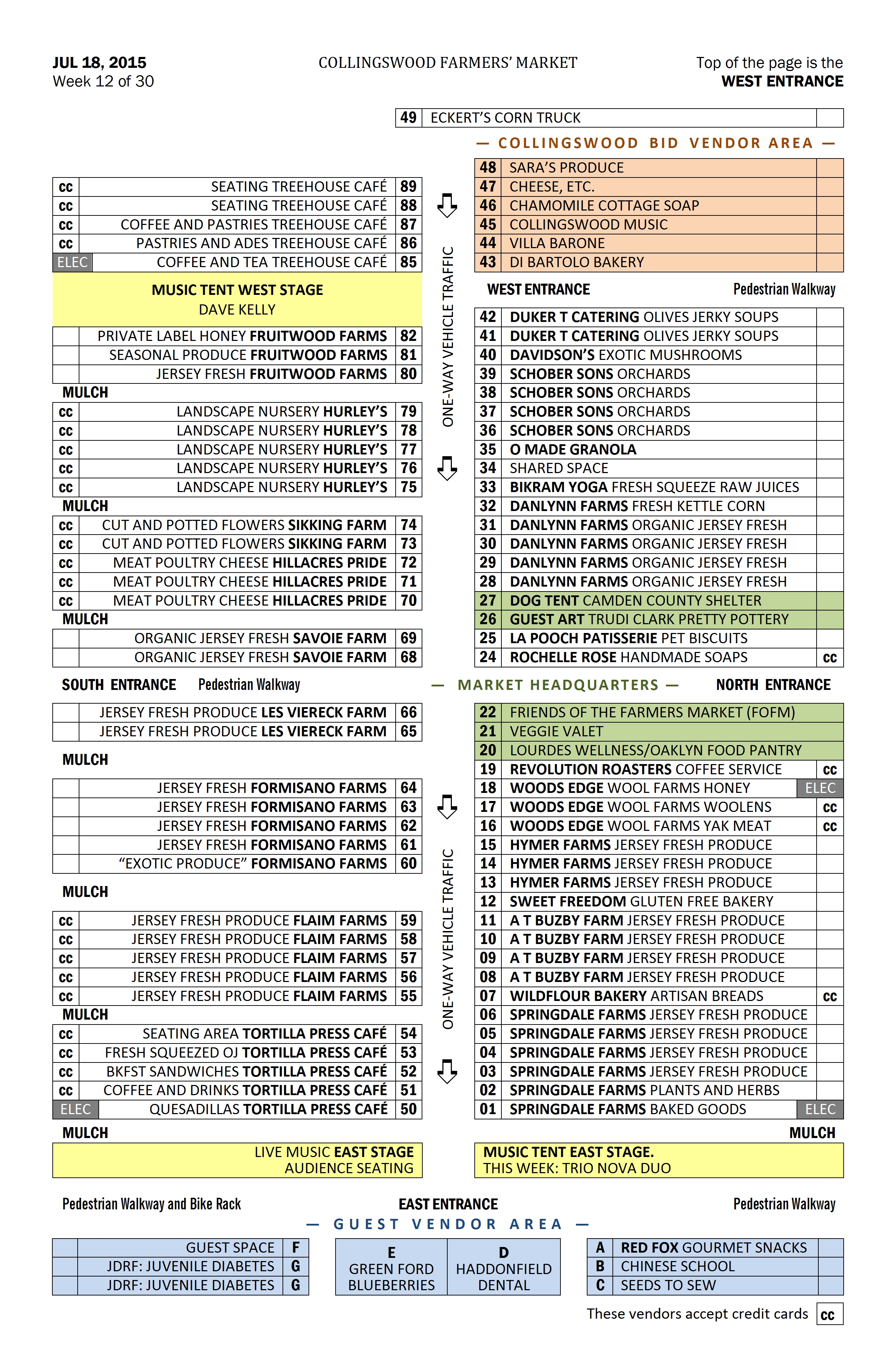 Changes will continue to occur throughout the season as vendors come and go and as we learn more about how neighbors interact. I remind you no spaces are ever guaranteed and require your cooperation if I have to move your location any given week. Thank you.