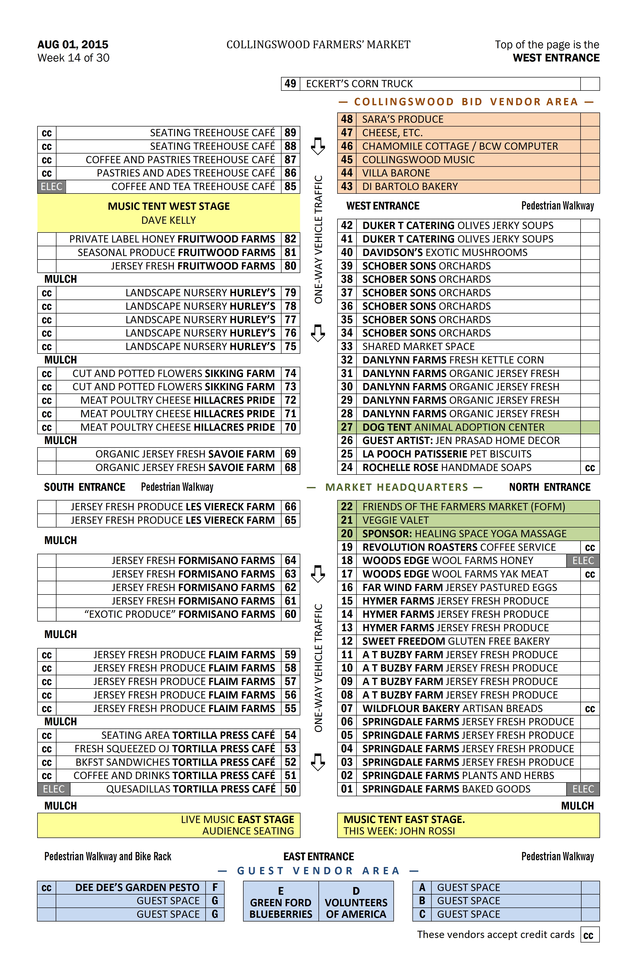 Changes will continue to occur throughout the season as vendors come and go and as we learn more about how neighbors interact. I remind you no spaces are ever guaranteed and require your cooperation if I have to move your location any given week. Thank you.