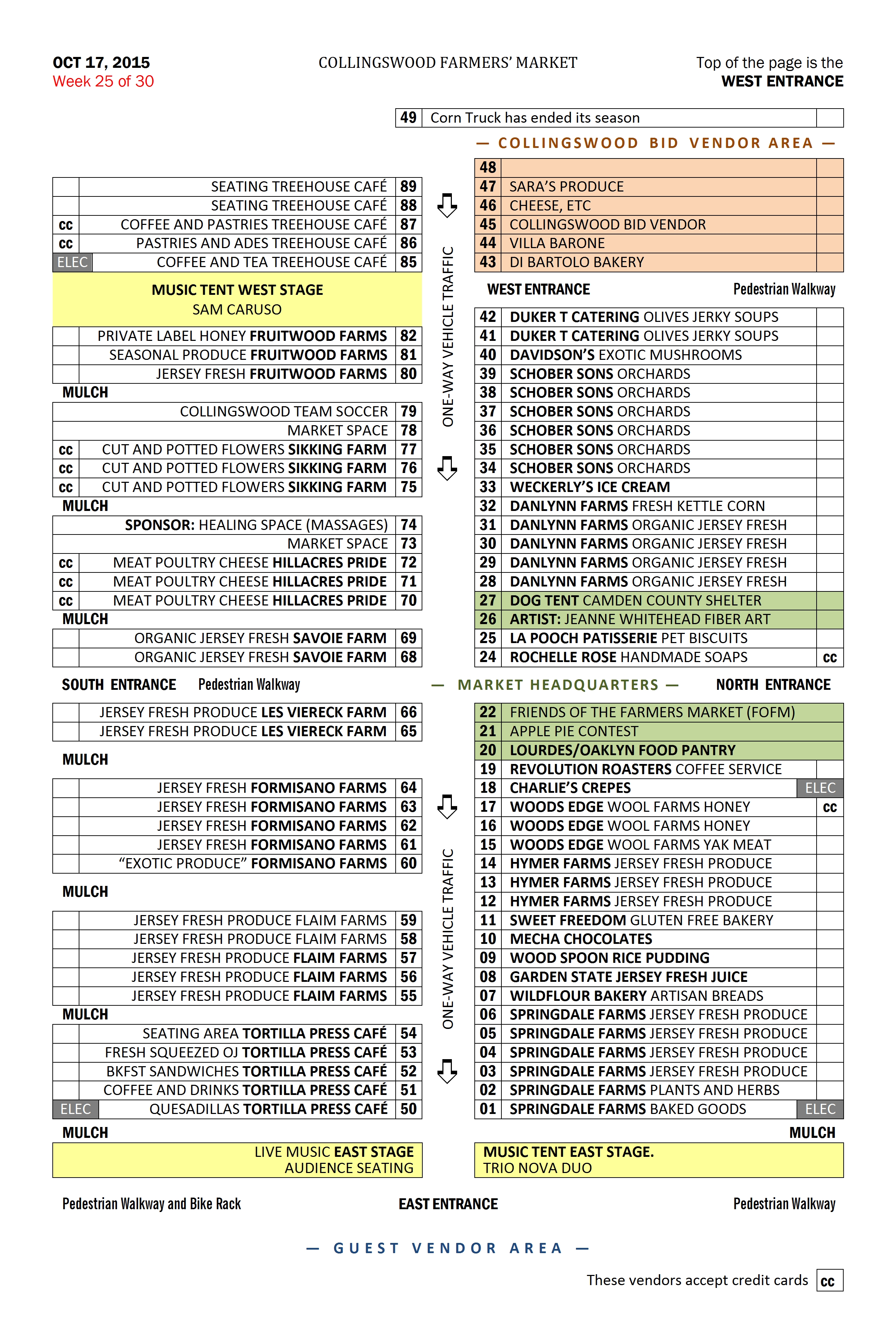 - The early departure of AT Buzby and Hurley’s Landscaping have created space within the Market, so all our guest vendors will find space in the “center” spaces. We will not need an additional Guest Vendor Section this week.