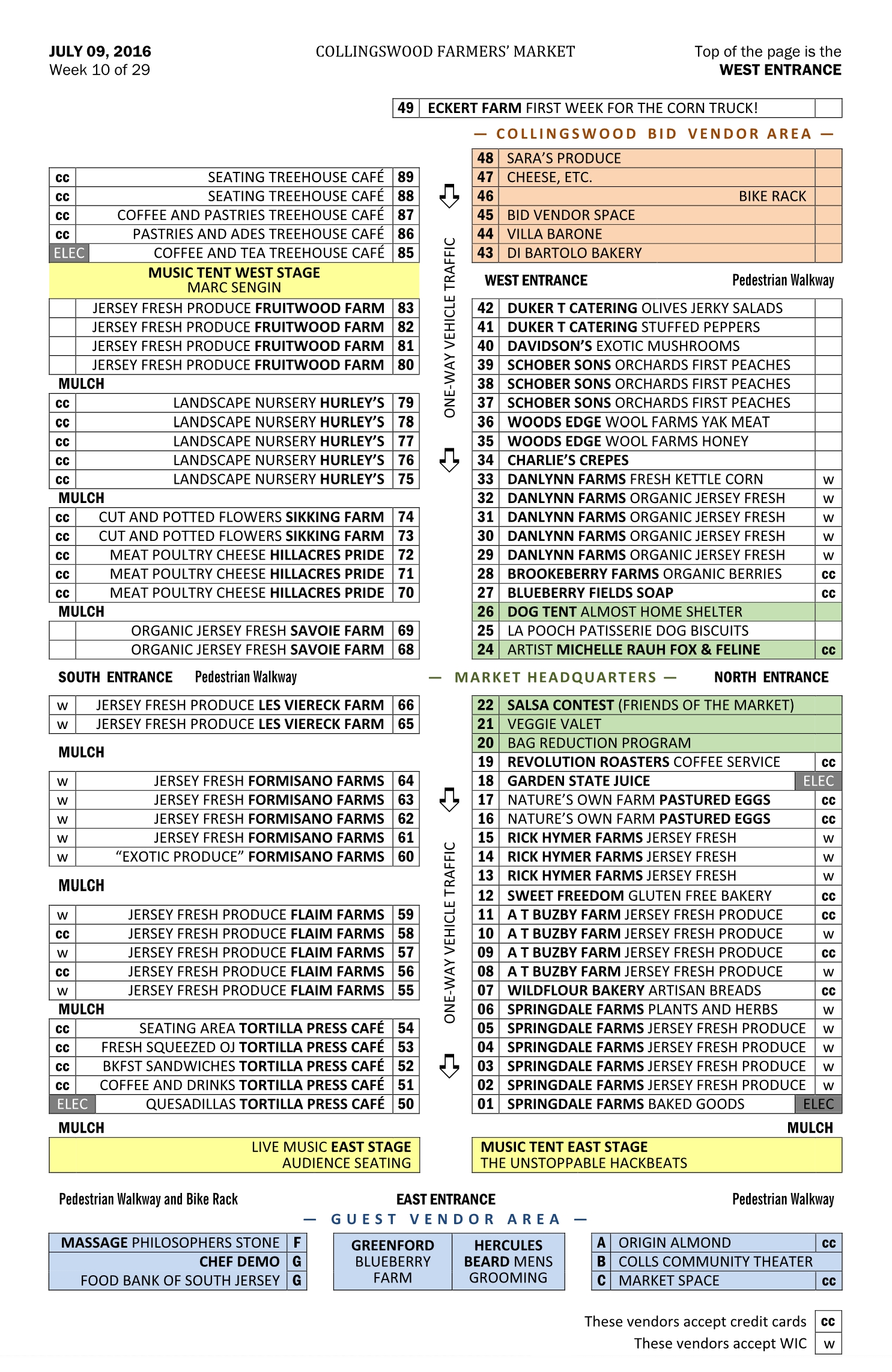 Changes will continue to occur throughout the season as vendors come and go and as we learn more about how neighbors interact. I remind you no spaces are ever guaranteed and require your cooperation if I have to move your location any given week.