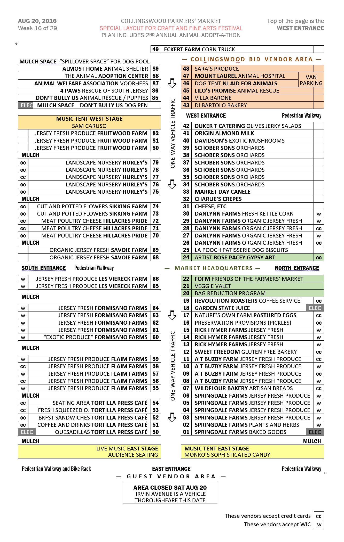 Changes will continue to occur throughout the season as vendors come and go and as we learn more about how neighbors interact. I remind you no spaces are ever guaranteed and require your cooperation if I have to move your location any given week.