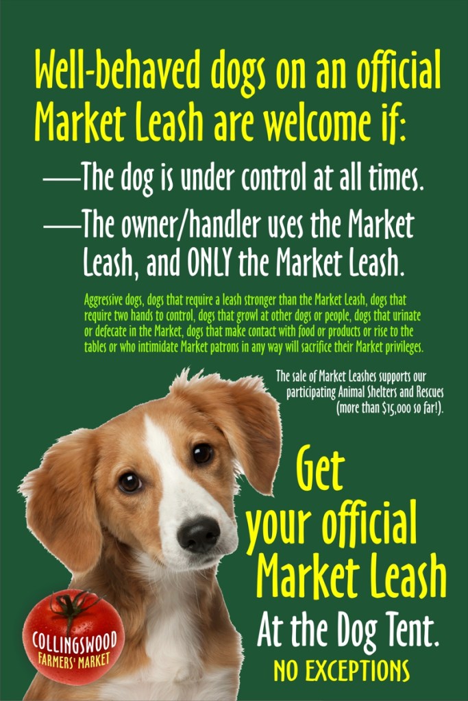 - Dogs on Market leashes are once again welcome at the Market.