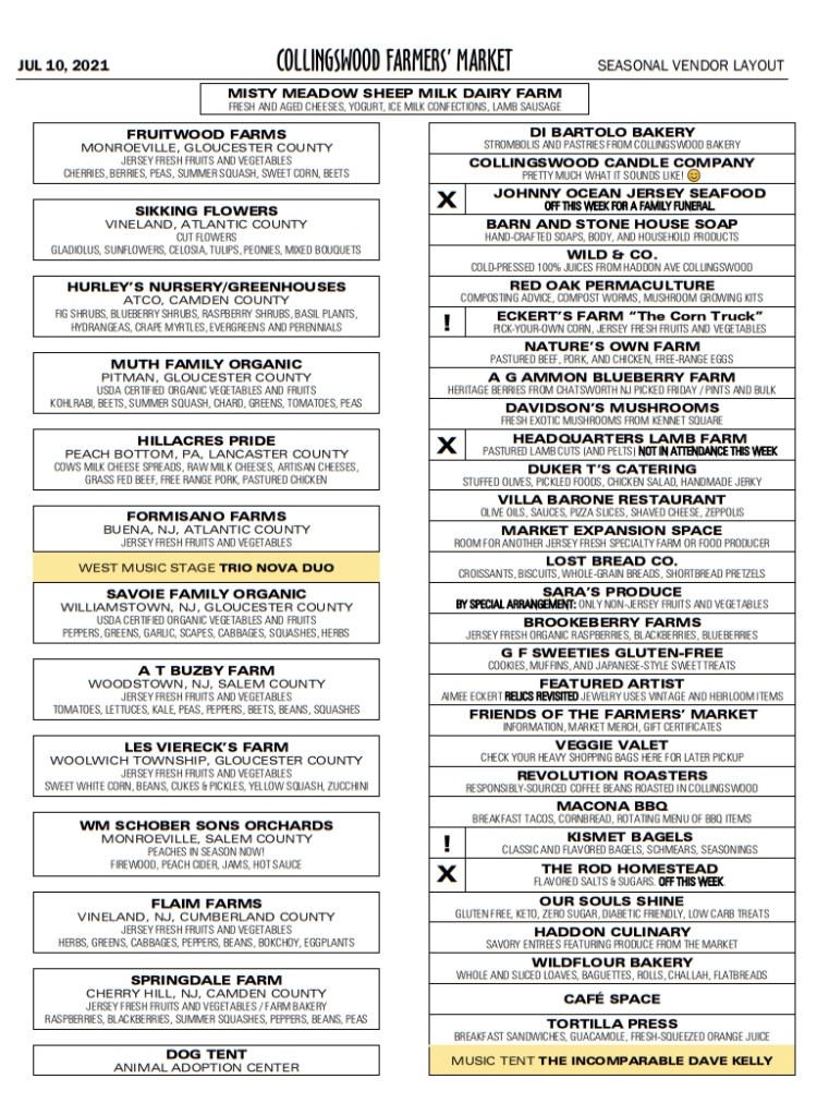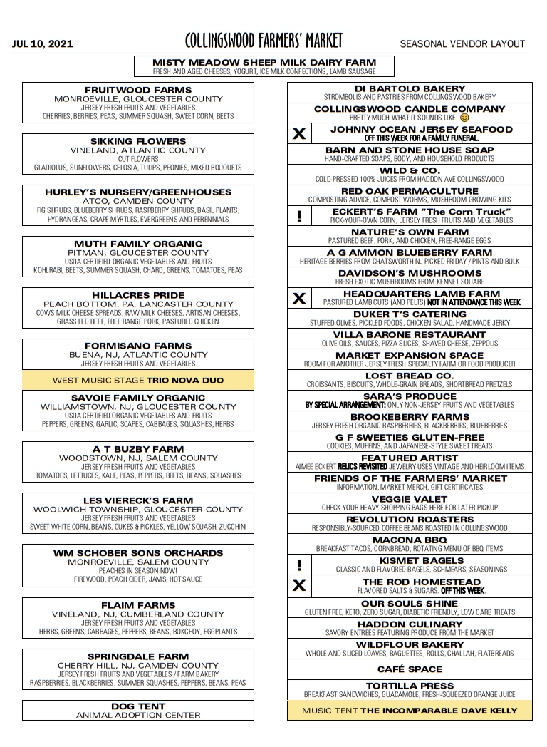 - Collingswood Police have asked us to enter the Market from Irvin Avenue for Load-in.