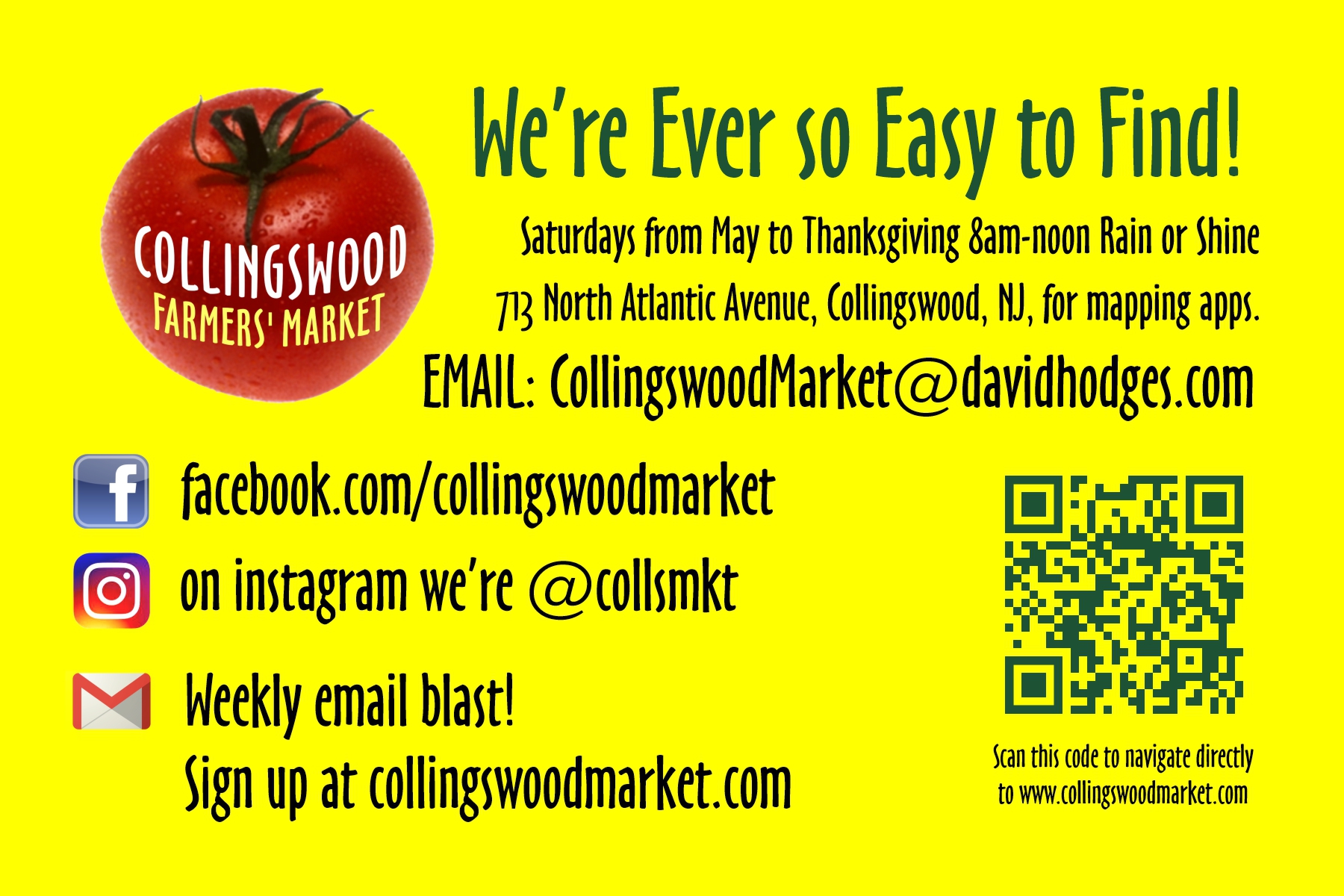 - These “We’re Ever So Easy to Find” cards are now available at the Friends of the Farmers’ Market tent.