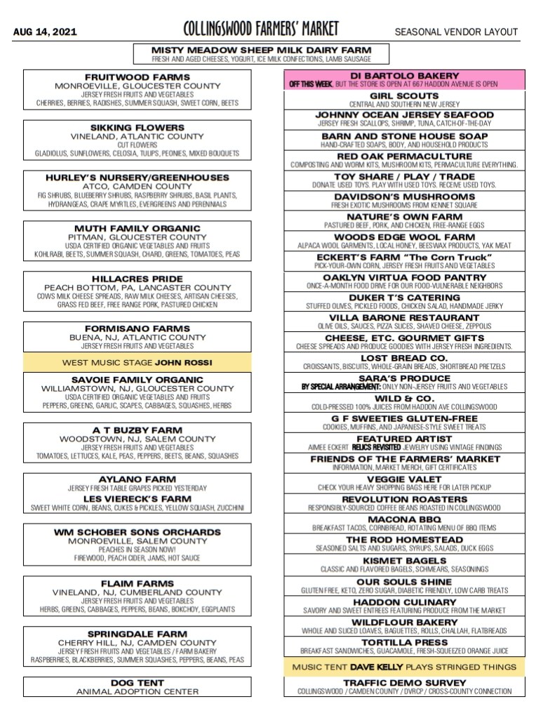 - Collingswood Police have asked us to enter the Market from Irvin Avenue for Load-in.