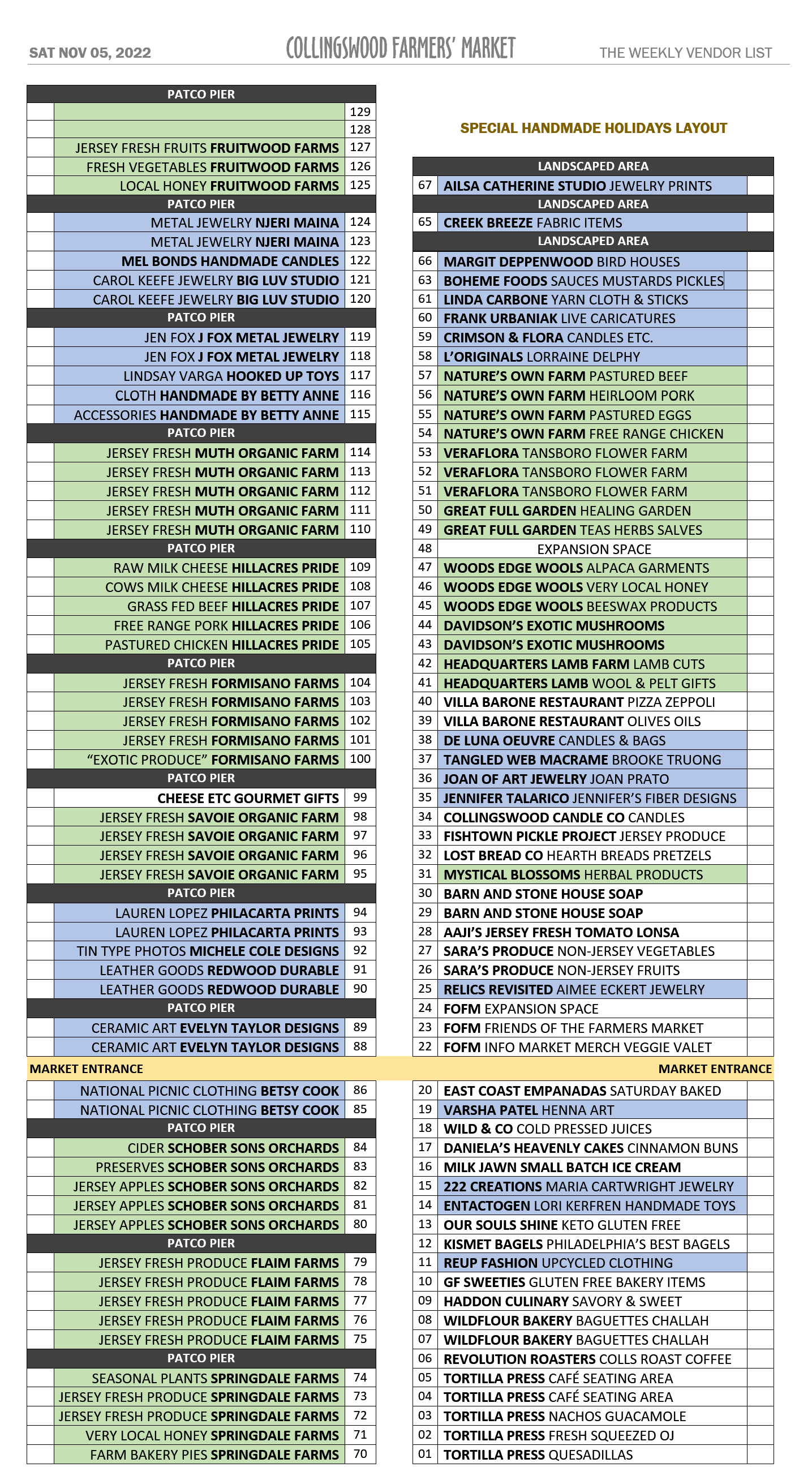 - FARM VENDORS ONLY will enter the Market and set up under PATCO.