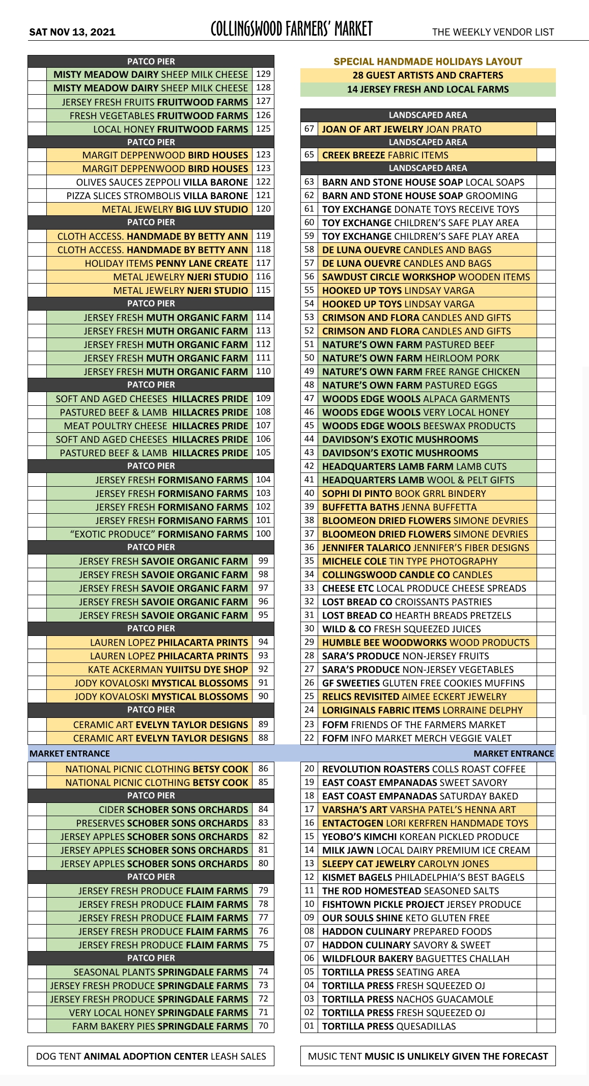 This post contains the Vendor Layout for SAT NOV 13 only