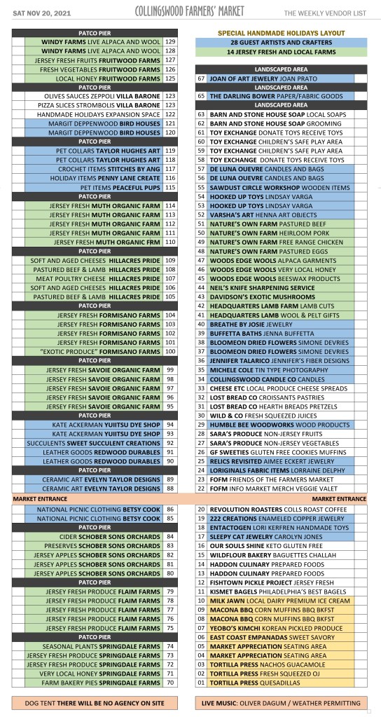 Welcome Artists and Crafters. We’re delighted to host you for the 2021 Handmade Holidays event at the Collingswood Farmers’ Market.