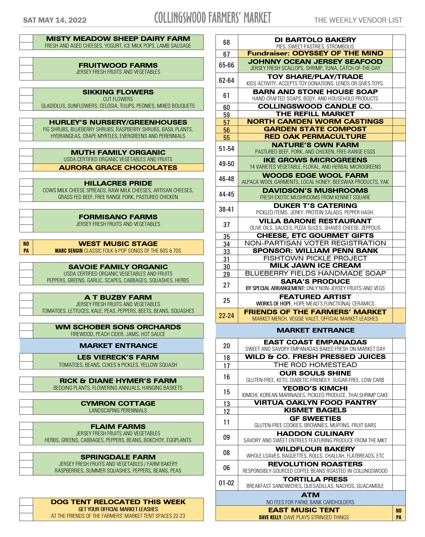 - Collingswood Police have asked us to enter the Market from Irvin Avenue for Load-in.