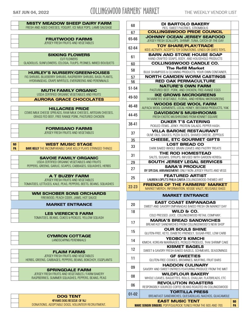 - Collingswood Police have asked us to enter the Market from Irvin Avenue for Load-in.