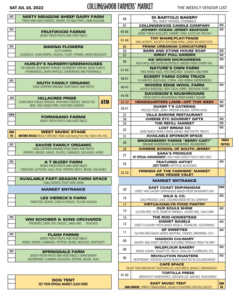 Vendor List SAT JUL 16, 2022